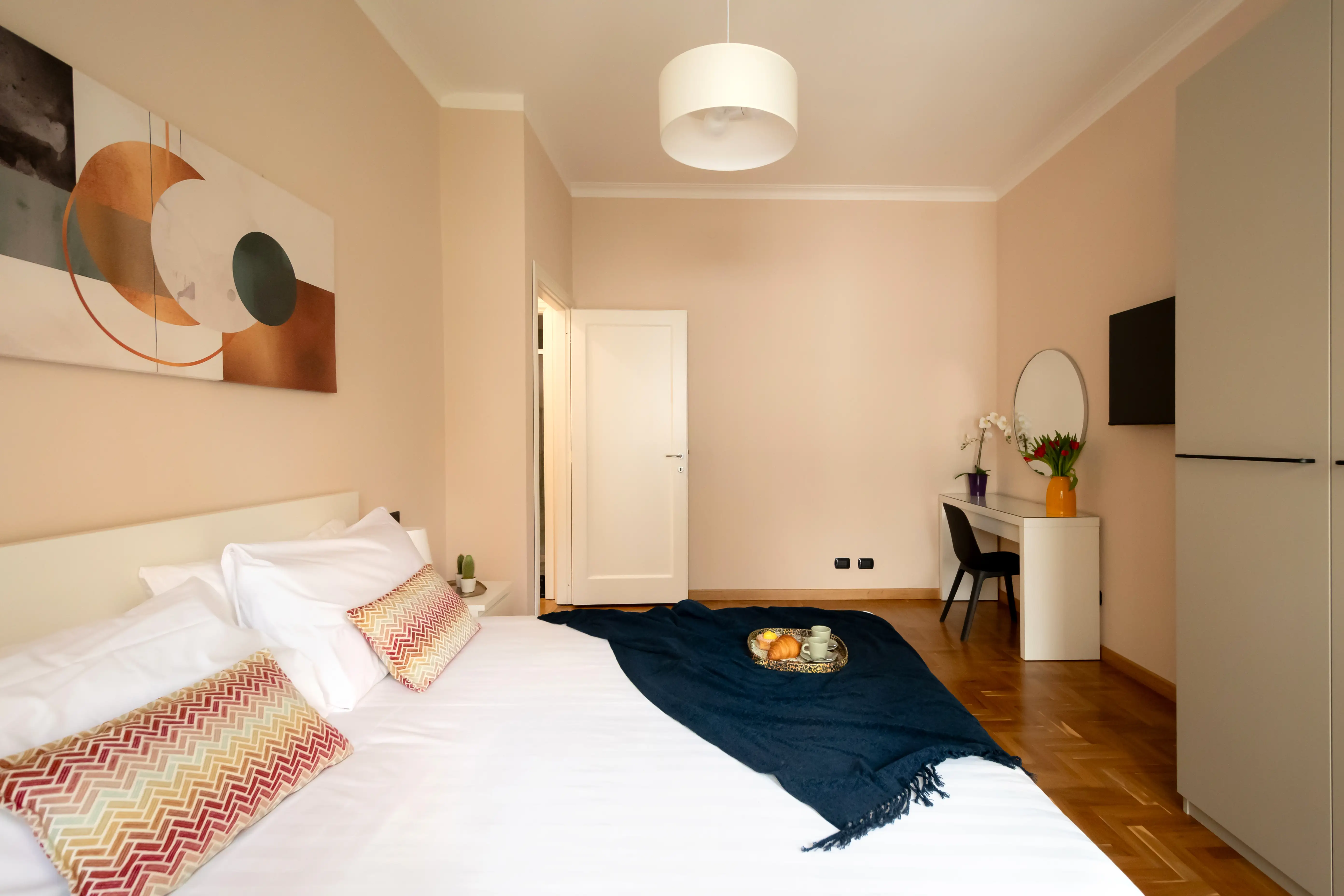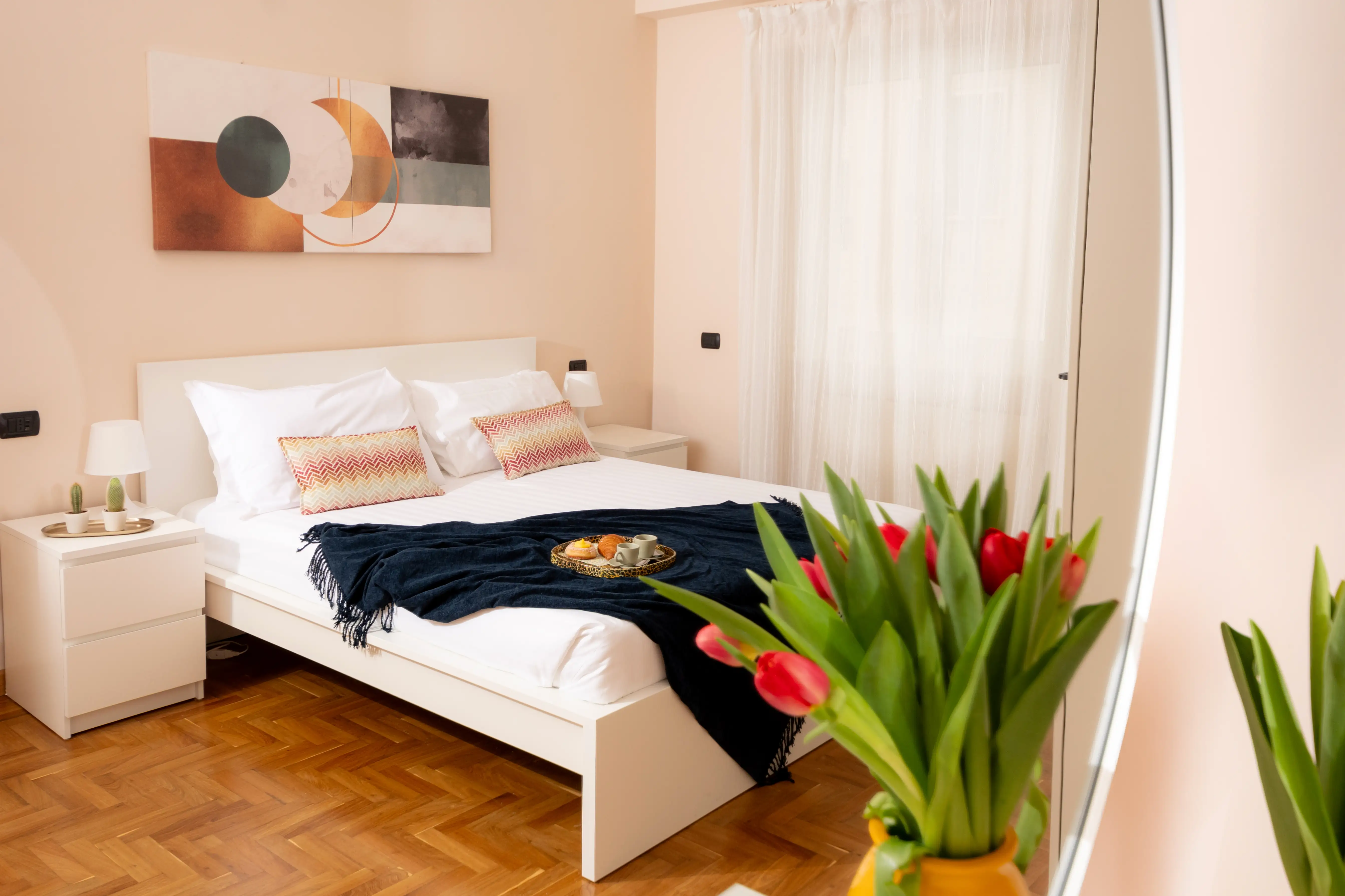 - 2 camere matrimoniali molto spaziose e luminose, di cui una padronale con scrivania/toeletta per truccarsi - Soggiorno accogliente con divano letto - Cucina moderna e attrezzata con forno/microonde, piano a induzione, macchina del caffè, bollitore e tutto il necessario per cucinare - 2 balconi vivibili - Bagno con asciugacapelli e set di cortesia gratuiti